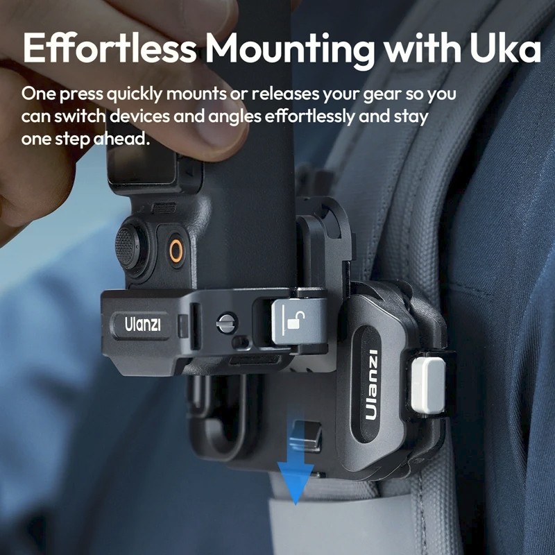 Enhance your DJI Pocket 3 experience with the Ulanzi PK13 Uka Expansion Adapter, designed for rapid, secure attachment to a wide range of camera rigs, tripods, and action mounts. Utilizing the Uka quick-release system, it allows effortless mounting and dismounting, while the dual-lock system (snap-lock + positioning screw) ensures stability during fast-paced action shots or POV filming.