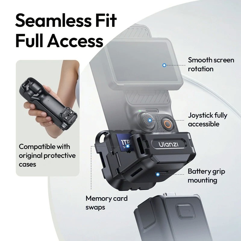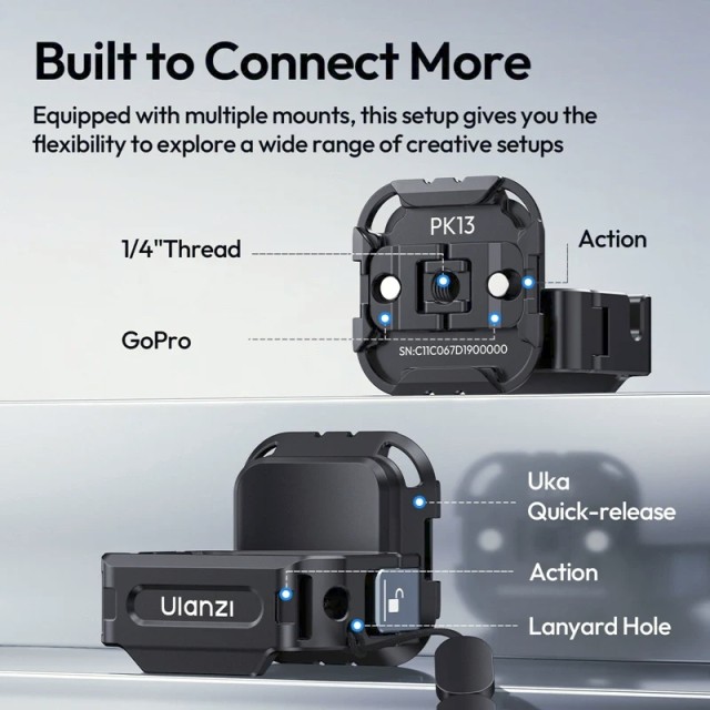 Perfect for hybrid shooting, dual-camera setups, POV recording, or on-the-go vlogging, the PK13 adapter unlocks endless creative possibilities while keeping your DJI Pocket 3 safe and fully accessible.
