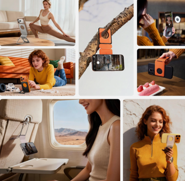 Equipped with a reliable MagSnap magnetic system, the PS01 securely attaches to MagSafe-compatible iPhones or Android smartphones using a magnetic ring or case. This ensures a stable hold for tasks such as video calls, streaming, browsing, or recording content.