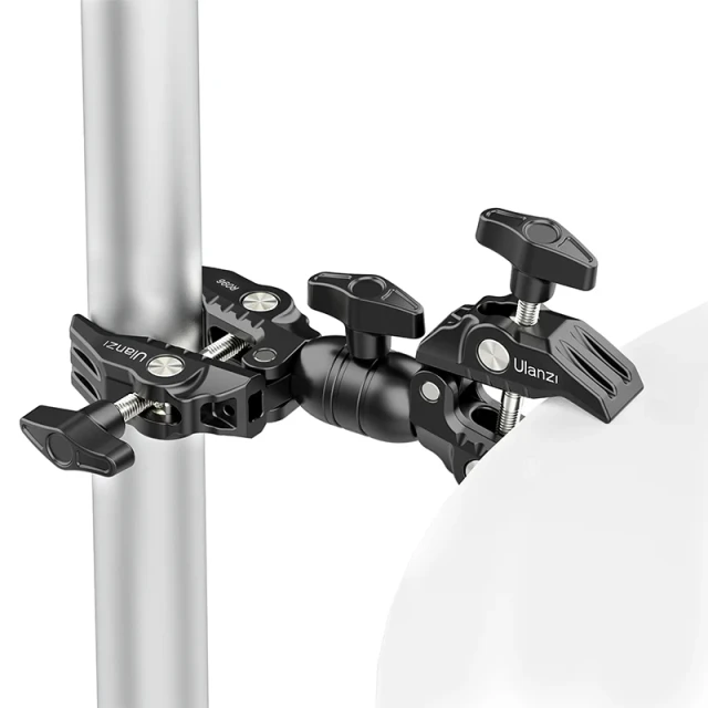 - Versatile Use: The clip has a maximum opening of 58mm/2.28" for securing accessories such as arms. It can firmly clamp the desktop/tripod/bike/wood pole/armrest/umbrella/hook/shelf/table/cross pole, etc. You can absolutely trust the ulanzi super clamp.