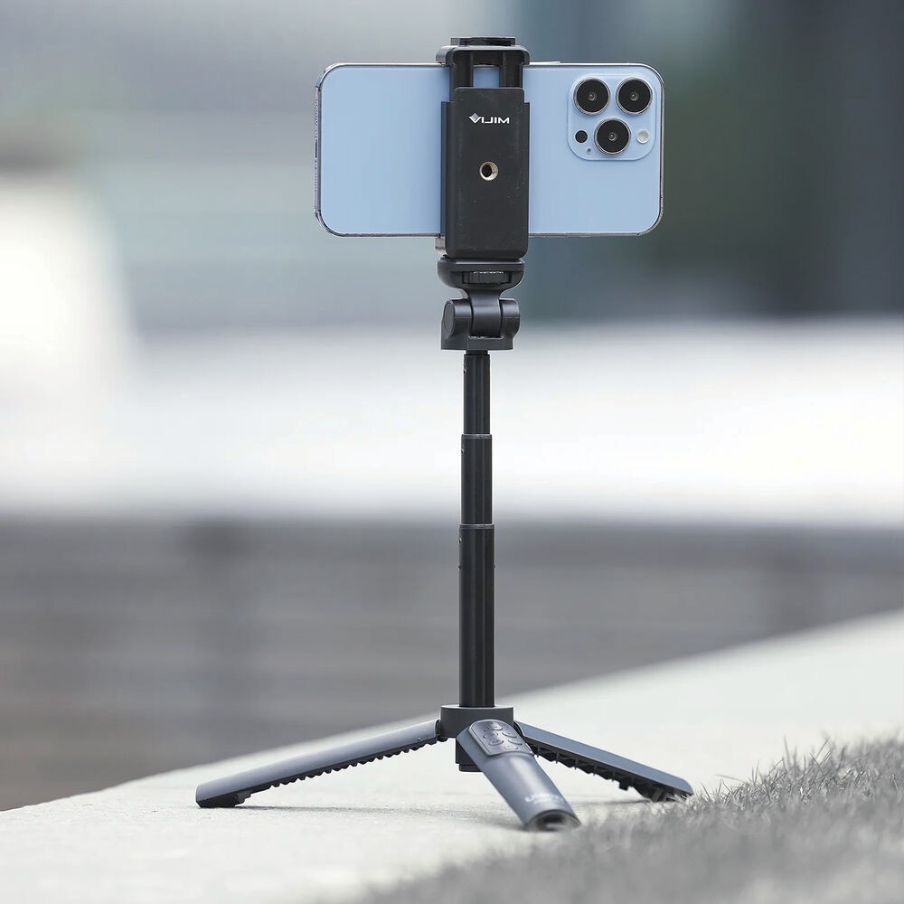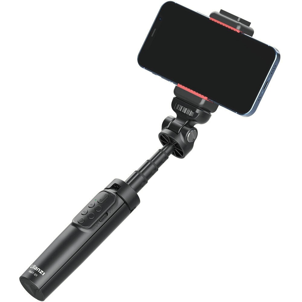 Take your vlogging, live streaming, and mobile photography to the next level with the Ulanzi RMT-01 Vlog Wireless Remote Control Tripod. This compact, lightweight device doubles as a selfie stick and tabletop tripod, featuring a 4-section anodized aluminum alloy rod that extends up to 16.5" and a 180° tilting head for flexible angles. Its handle unfolds into tripod legs with a 120° spread, providing a stable platform for smartphones, action cameras, or small digital cameras up to 3.3 lb.