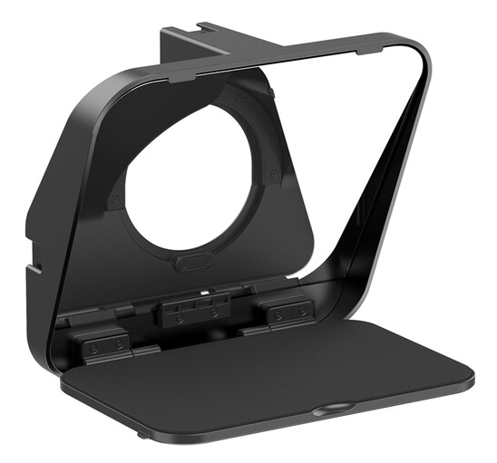 Built from durable ABS, PC, rubber, and glass materials, the RT02 features a foldable light-blocking baffle to prevent light leakage, anti-slip silicone padding for stability, and fingerprint-resistant glass for clear visibility. A cold shoe mount and 1/4"-20 threaded hole allow easy attachment of accessories such as microphones, lights, or tripods, making the RT02 a complete and portable teleprompting solution for professional results on the go.