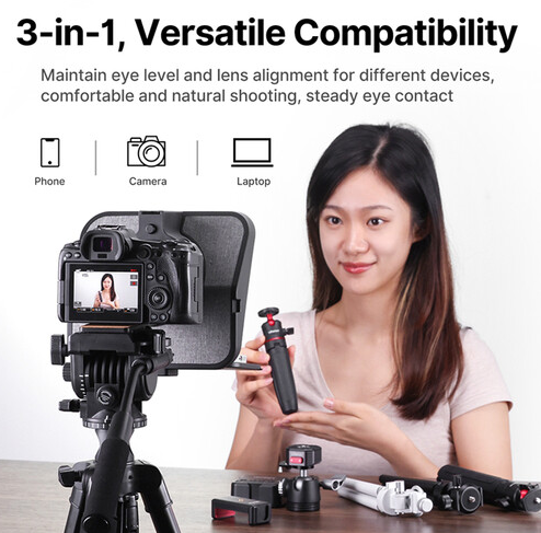 The Ulanzi R004GBB1 RT02 Universal Teleprompter is designed for creators who need a lightweight, versatile, and easy-to-use teleprompting solution. Ideal for video creators, vloggers, educators, live streamers, and presenters, the RT02 allows you to use your smartphone or tablet as a clear prompting monitor while maintaining natural eye contact with the camera.