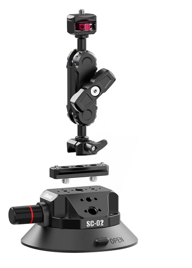 Constructed from durable metal and rubber, the SC-02 is designed to withstand demanding shooting environments. Whether mounted on a moving vehicle or a stationary surface, it delivers reliable performance and precise positioning for professional-quality footage.