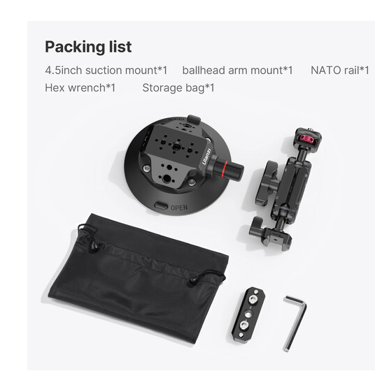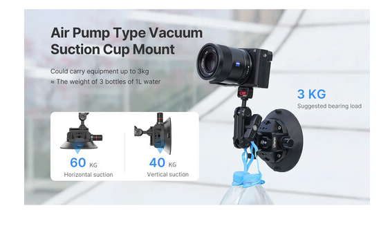 Once installed, the suction cup provides up to 88 lb of vertical holding force and 132 lb of horizontal holding force, supporting camera setups weighing up to 6.6 lb. This makes it ideal for car rigs, dynamic shots, time-lapse recording, and outdoor filming where stability is critical.