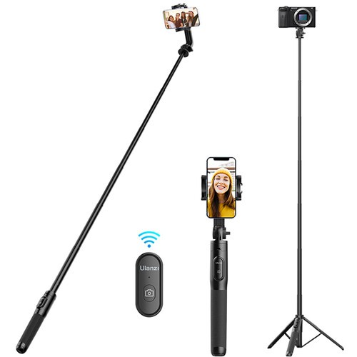 The Ulanzi SK-03 is a versatile 3-in-1 tripod, selfie stick, and handheld grip designed for smartphones, action cameras, and compact cameras. Its 7-section aluminum alloy shaft extends from 15.75" (40 cm) to 62.99" (1.6 m), allowing flexible shooting heights and selfie lengths. The included removable Bluetooth shutter remote lets you trigger photos and video from up to 10 meters away.
