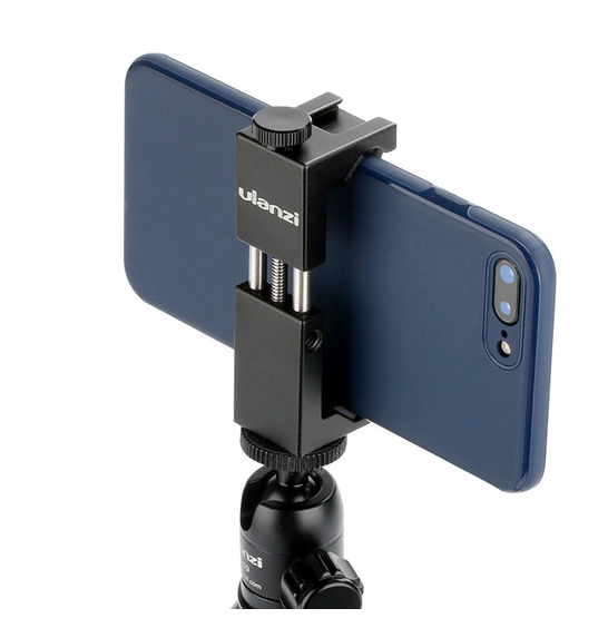 The Ulanzi ST-02S IronMan II is a durable all-metal smartphone tripod mount with rubber grips, designed to securely hold phones 2.6"–3.7" wide. Mount your phone vertically or horizontally, attach accessories via the cold shoe, or place it on flat surfaces for versatile shooting.