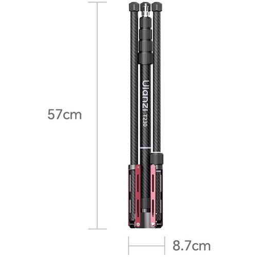 The Ulanzi T230 Light Stand offers flexibility and stability for professional and amateur creators alike. Its independent reversible legs and anti-slip silicone feet allow it to remain steady on uneven surfaces, while the telescoping removable center column adjusts from 22.8" up to 90.5" (57–230 cm) to suit a variety of lighting angles. Constructed with aluminum, carbon fiber, plastic, and steel, the T230 is lightweight at just 0.95 kg yet strong enough to support lights, cameras, or accessories weighing up to 11 lb (5 kg). The stand features a 1/4"-20 mounting screw and standard light stand stud for broad compatibility. Foldable to 22.4" (57 cm) and including a storage bag, it’s easy to transport and ideal for on-the-go shoots or studio setups.