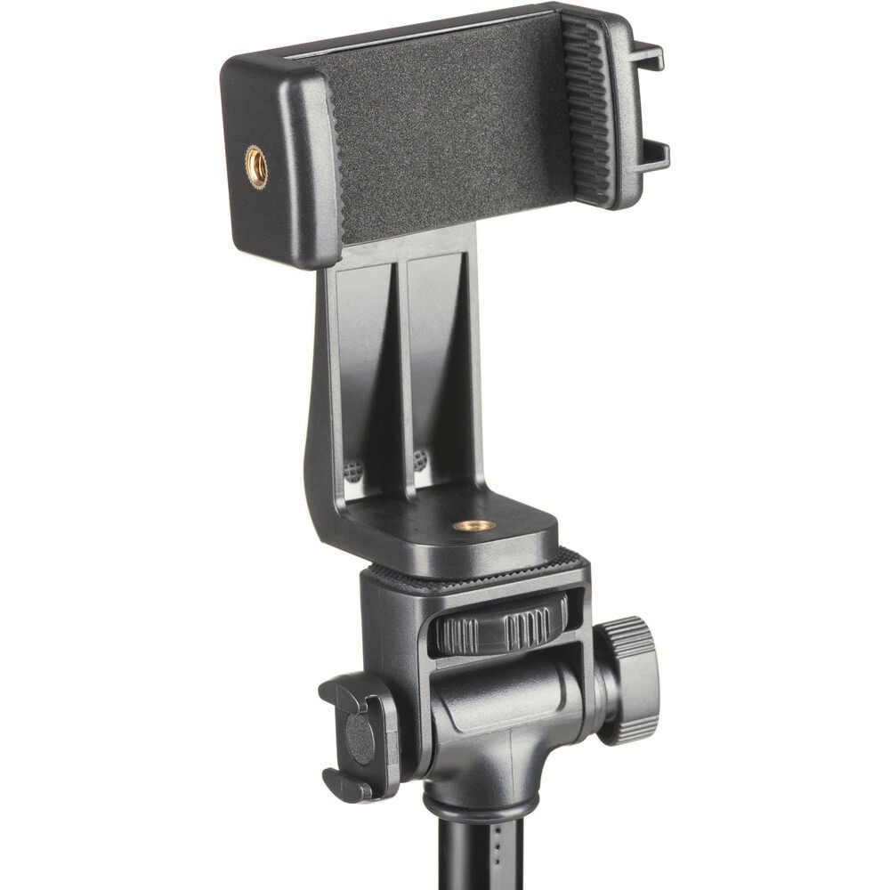 The tilting head supports a device clamp with an additional 1/4"-20 screw and cold shoe mount for attaching accessories such as microphones, small LED lights, or other devices. The spring-loaded phone clamp keeps your device secure and protected with foam and rubber pads. Included with the tripod is a Bluetooth shutter remote, which mounts conveniently to the tripod legs, as well as a carrying bag for portability. Lightweight and easy to set up, the TB64Z is ideal for live streaming, video blogging, or remote recording.