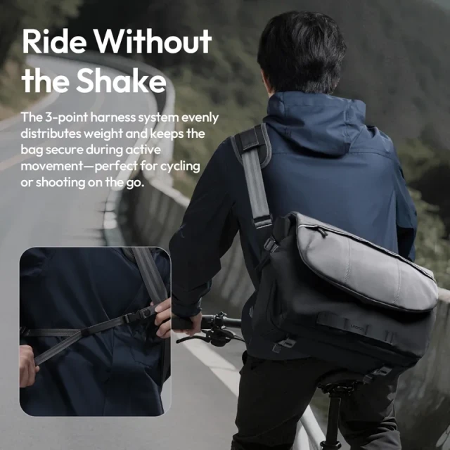 The 3-point harness system evenly distributes weight and keeps the bag secure during active movement—perfect for cycling or shooting on the go.
