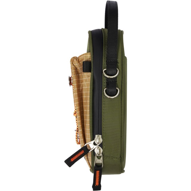 The bag features a wide dual-zippered opening that provides quick and easy access to the main compartment. Inside, padded walls and fixed dividers with organizational pockets help keep your items protected and neatly arranged. A front exterior pocket with a drawstring closure offers fast access to frequently used items and can even hold a small water bottle when needed.