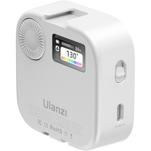 The Ulanzi U60 RGB Pocket Light with U-Mount (White) is a powerful yet pocket-sized lighting solution built for creators who need flexibility and creativity on the go. Equipped with 60 high-accuracy LED beads, it delivers bright, even illumination with excellent color accuracy (CRI 95), making it ideal for vlogging, livestreaming, portraits, and product photography. The light supports full RGB color control with adjustable hue from 0–359° and a broad CCT range from 2500K to 9000K, allowing you to easily match ambient light or create unique moods. An integrated LCD screen provides real-time feedback for precise control over brightness, color temperature, and RGB settings. Powered by a built-in 2500mAh rechargeable lithium battery and charged via USB-C, the U60 offers long-lasting performance in a lightweight 3.8 oz body. With a magnetic rear surface, clip, cold shoe, and 1/4"-20 thread, it adapts effortlessly to a wide variety of shooting setups.