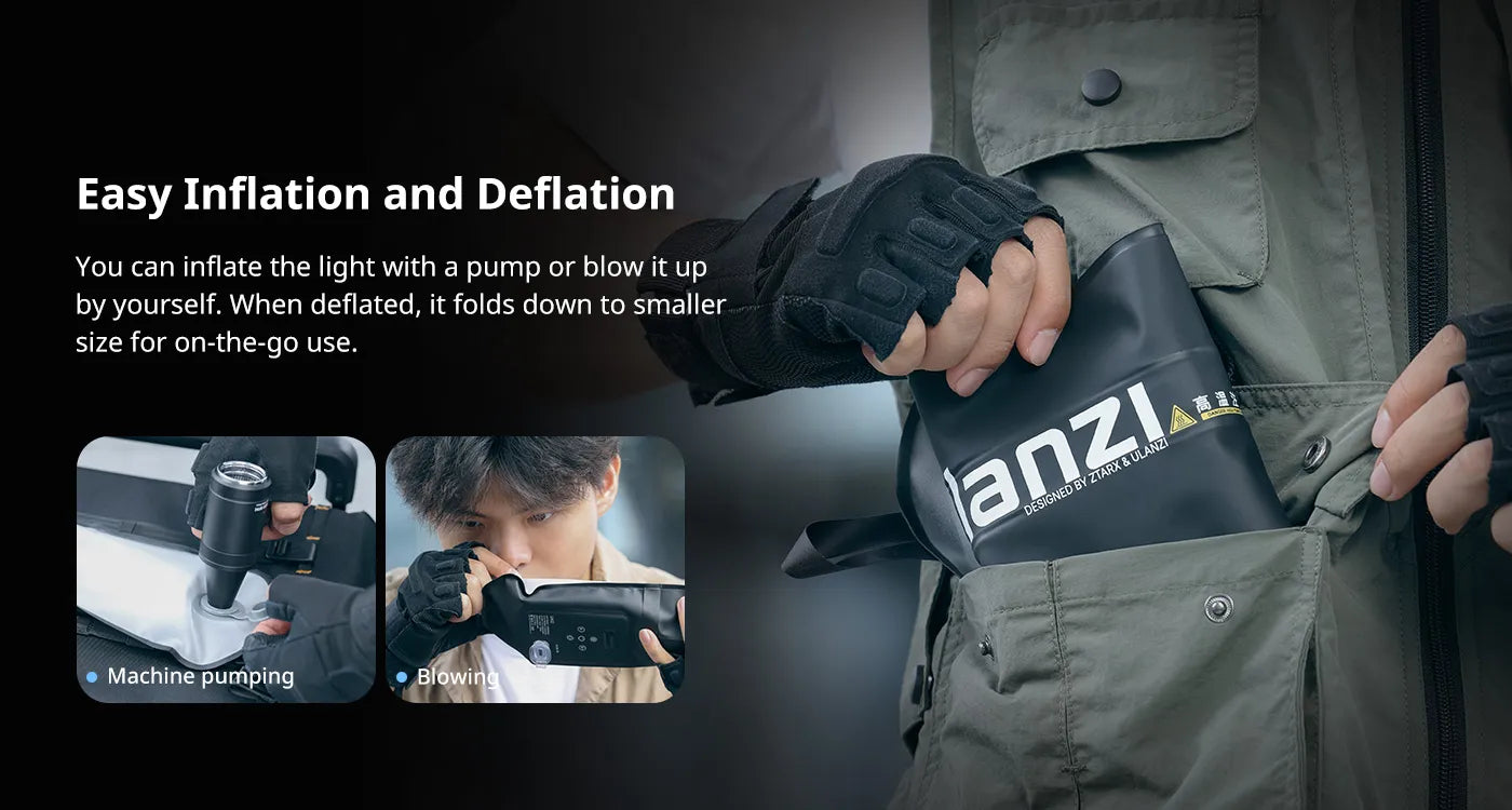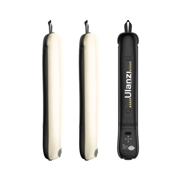 The Ulanzi UA12/UA20 Portable Air Tube Light offers easy inflation and deflation, suitable for various scenarios. Adjust the color temperature from 2700K to 6500K to match your shooting needs. Enhance your creativity with 12 preset light effects. The magnetic mount and 1/4" stand ensure versatile setups, and a lanyard allows for easy hanging. Powered by an 18Wh battery, it supports fast charging in 2 hours, providing 75 minutes (UA12) or 55 minutes (UA20) of runtime at full brightness. Perfect for on-the-go use, it folds down compactly when deflated.