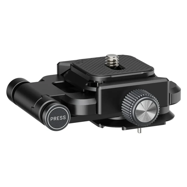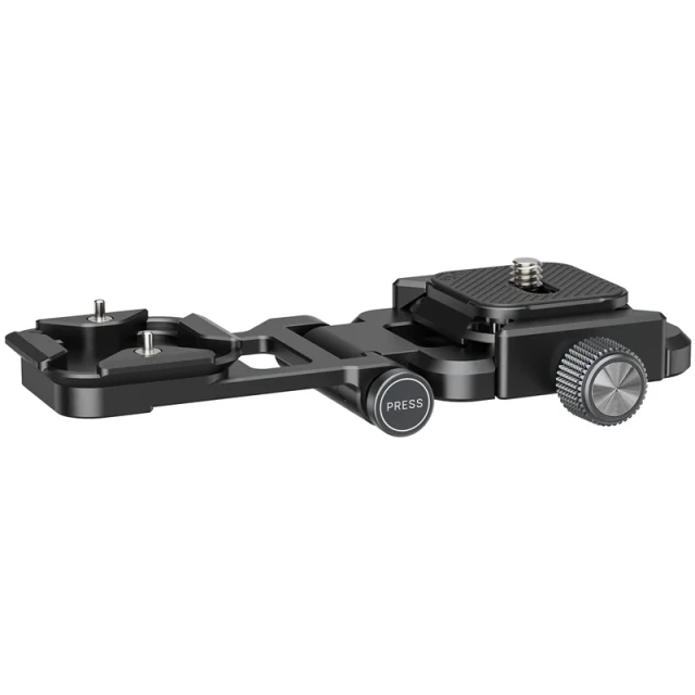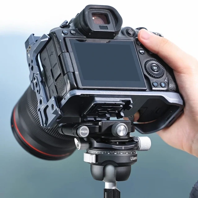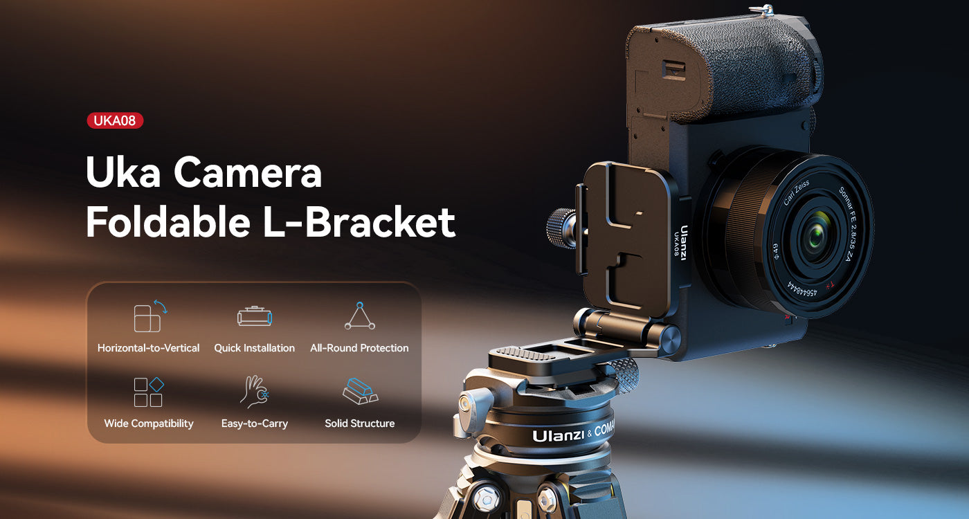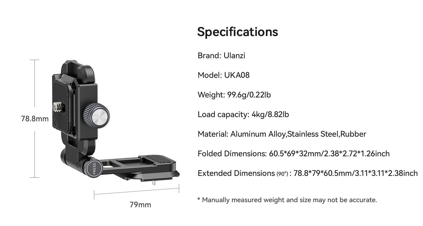 Foldable L-Bracket. Vertical & Horizontal Quick Switching Effortlessly switch from horizontal to vertical shooting via a press button. Compatible with most quick-release plates. Lock and unlock easily with a twist knob.
