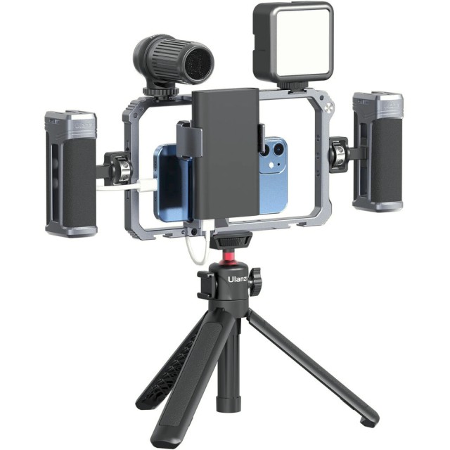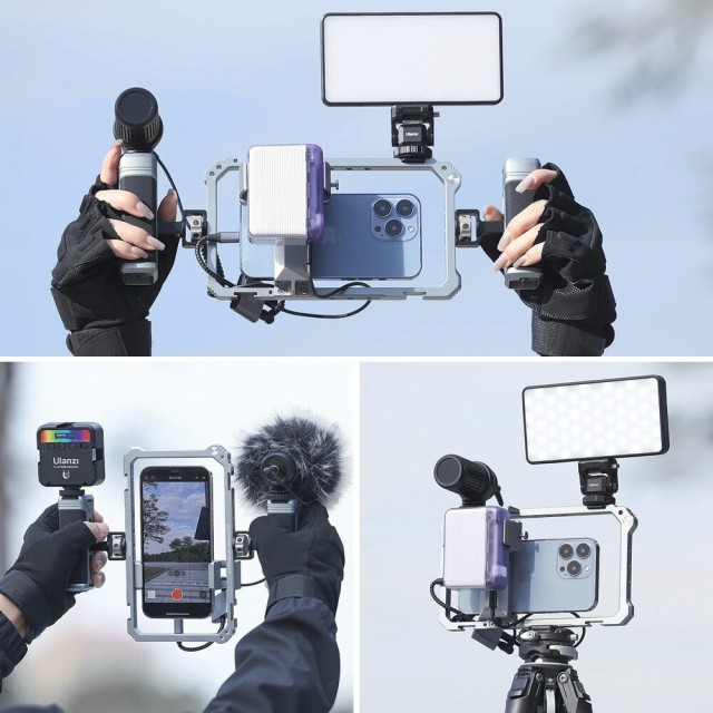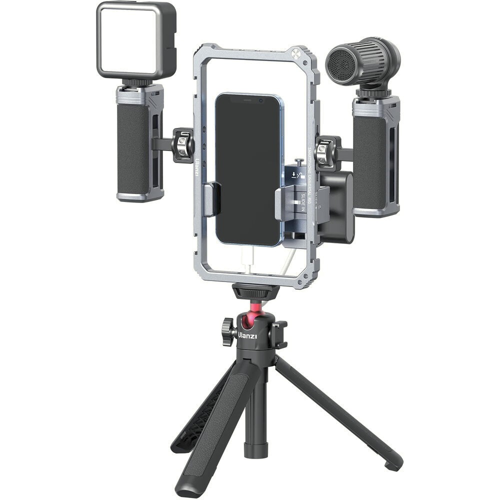 The Ulanzi Universal Phone Vlogging Video Rig is a versatile, professional-grade rig for smartphones, offering dual adjustable handles, multiple mounting points, and anti-slip padding to stabilize your shots for vlogs, streaming, or mobile filmmaking.