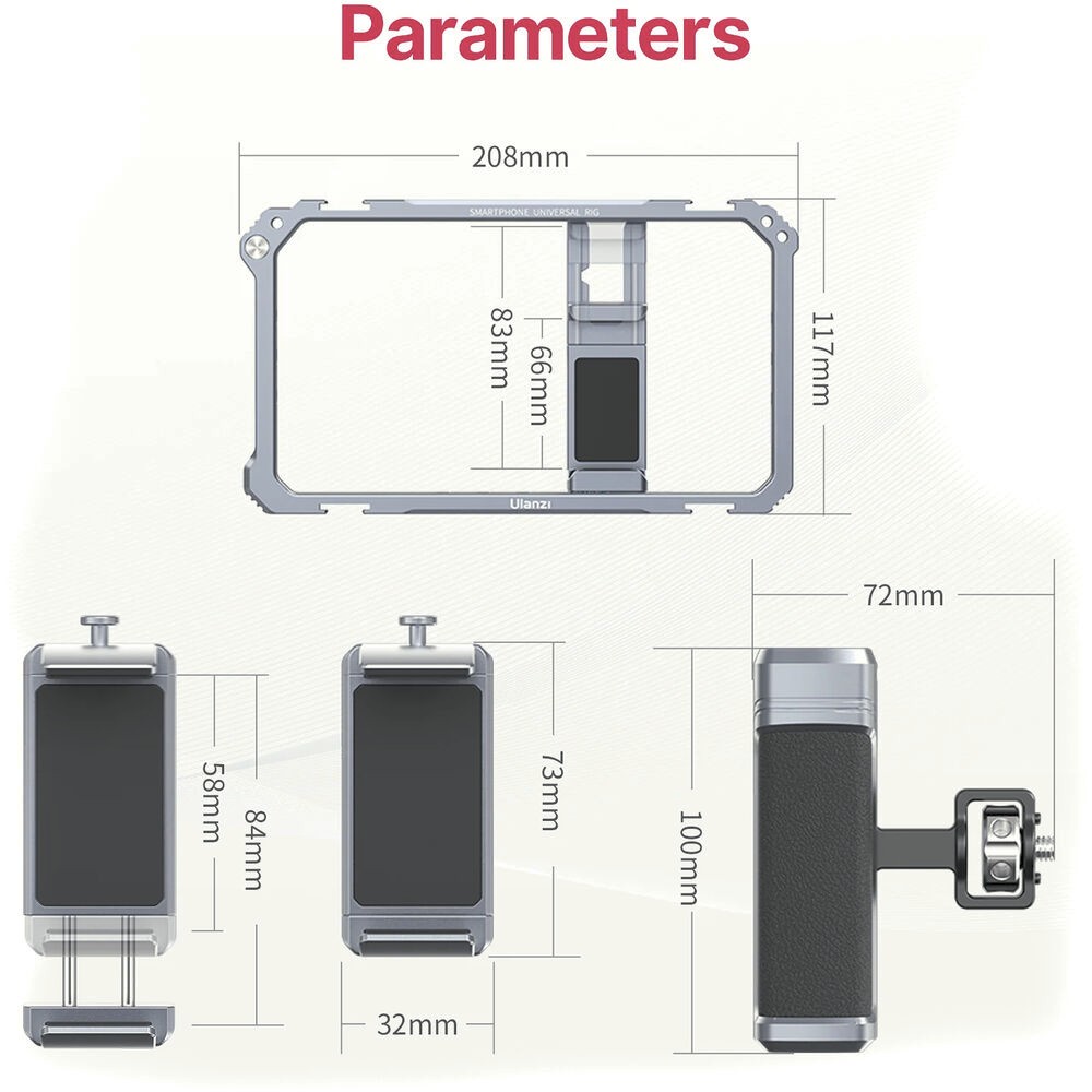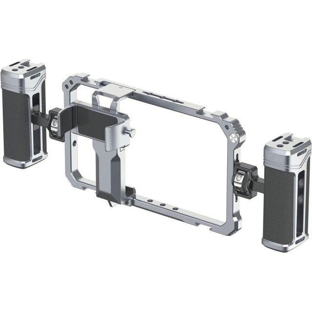 Take your mobile content creation to the next level with the Ulanzi Universal Phone Vlogging Video Rig. Designed to hold smartphones 2.6 to 3.3 inches wide, this rig eliminates shaky footage with its dual height-adjustable handles and textured grips. Handles can be attached in portrait or landscape orientation, giving you complete flexibility for any type of shot.