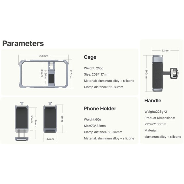 Three-sided anti-slip silicone padding protects your phone and keeps it secure, while the robust aluminum alloy construction ensures durability without adding excessive weight. Whether you’re vlogging, live streaming, or creating cinematic mobile content, this rig provides the stability and expandability to enhance your workflow.