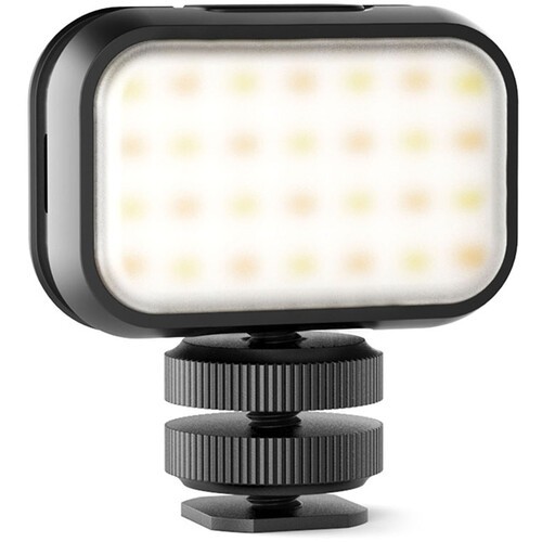 The Ulanzi VL28 Super-Mini Video Light is a portable, daylight-balanced LED panel designed for on-camera use. Featuring 28 LEDs with a color temperature of 6500K and a CRI of 95, it provides accurate, natural illumination for vlogging, photography, or video production. Its compact form factor makes it perfect for mounting on DSLRs, mirrorless cameras, or smartphone rigs. A soft silicone diffuser ensures gentle, even lighting, while four brightness levels plus an SOS mode allow for flexible lighting control. Powered by a built-in rechargeable lithium-ion battery, the VL28 delivers up to three hours of runtime and recharges via USB-C. Mounting is simple with a 1/4"-20 thread and included shoe adapter, making it adaptable to a wide range of setups. Lightweight and compact, the VL28 is an ideal companion for content creators seeking quality lighting on the go.