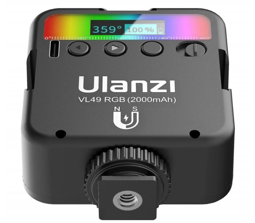 The Ulanzi VL49 RGB LED Light (Black) is a compact and versatile 6W on-camera light featuring full RGB color control, adjustable color temperature from 2500K to 9000K, and 13 built-in lighting effects. With a built-in 2000mAh rechargeable battery, magnetic mounting, and multiple cold shoe expansion points, it’s ideal for photography, vlogging, streaming, and video production.
