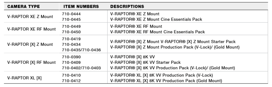 - The customer price is determined by deducting the trade-in credit for the existing camera from the manufacturer's suggested retail price (MSRP) of the new V-RAPTOR XE, V-RAPTOR [X], or V-RAPTOR XL [X] camera (sold separately or as part of a bundle).