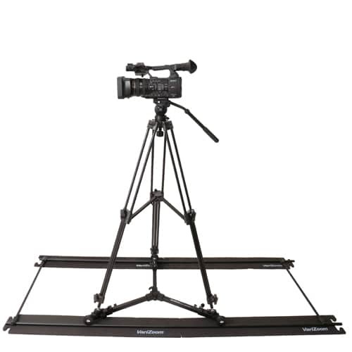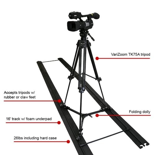 The specially designed, rubber-lined wheels provide completely silent operation, while the included high-density foam underpadding allows the track to be placed on virtually any surface, including grass, gravel, carpet, tile, and concrete. Adjustable tripod mounting brackets allow operation close to the ground, on countertops, or at full height up to 67 inches using the included VZ-TK75A tripod system.