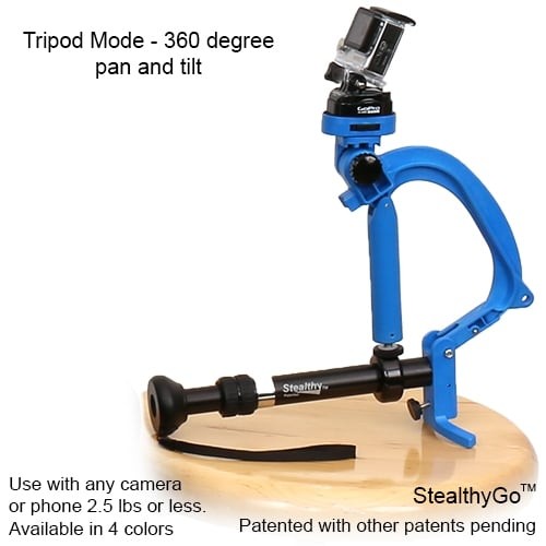 The VariZoom StealthyGo™ is a versatile, multi-use support system for GoPro® cameras, small camcorders, and mobile devices. It transforms easily between stabilizer, tripod, monopod, tabletop and handheld modes, providing smooth, stable shots in almost any shooting scenario.