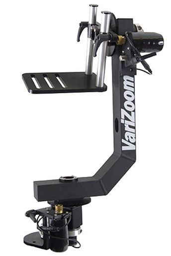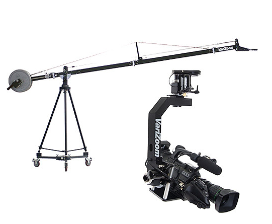 The VariZoom VZ-SNAPCRANE12-100 SnapCrane Kit is a professional 4-meter camera crane system offering up to 12'6" of vertical movement, a 30 lb payload capacity and includes a motorized pan/tilt head, heavy-duty tripod, wheeled dolly, and transport case for smooth, cinematic camera moves.