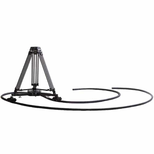 The VariZoom CineTrac System is an all-in-one dolly, track, and tripod solution engineered for smooth cinematic motion where traditional track systems are impractical. The system includes the CineTrac Dolly, 22′ flexible track, and TC-100A tripod with a 100mm bowl, providing a versatile platform for professional camera setups. Variable-length platform legs, swiveling casters, and flexible track allow operators to easily create straight or curved dolly paths while navigating tight spaces without collision. The flexible track can be looped to create parallel runs, enabling dynamic movement options with quick setup and teardown. Designed to support heavy camera loads, the CineTrac System folds compactly for transport and includes a durable cushioned carrying case with straps, making it ideal for location and studio production.