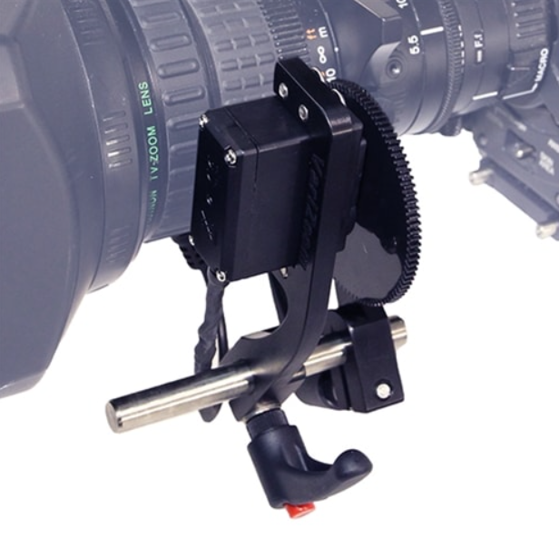 The system features an LCD readout for easy positioning and programming, along with a servo focus bracket and a 20-foot extension cable using standard 3.5mm stereo mini-jack connectors, supporting operations up to 50 feet. The unit comes with Canon, Fujinon, and iris gears, enabling seamless integration with a wide variety of lenses. A rechargeable Canon BP-915 style battery powers the unit for reliable field use.