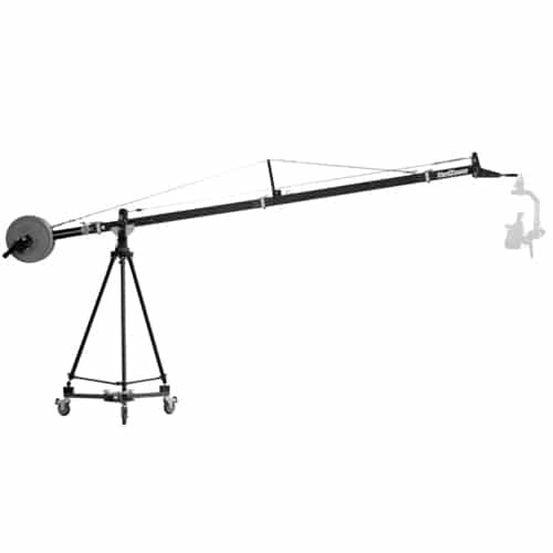The VariZoom VZSNAPCRANE12 is a professional 12-foot (4 m) modular camera crane/jib system engineered for broadcast and cinema production. Made in the USA, it delivers exceptional stability, long reach, and fast tool-free setup, and includes a heavy-duty tripod, dolly with outriggers, and carrying case for a complete turnkey solution.