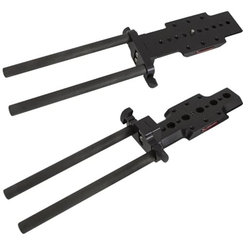 The VZDVRODS system offers flexible X-Y adjustment and reversible plates for added vertical range, while providing a flat, low-profile mounting surface for accessories like matteboxes, counterweights, and wireless adapters. Together, the kit ensures ergonomic control, stability, and versatility for professional camera setups.