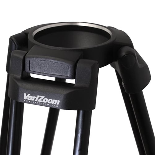 The VariZoom VZT100AM is a versatile 100mm video tripod designed for portability and professional stability. Featuring 2-stage height adjustment and a mid-level spreader, it adapts easily to a variety of shooting surfaces. The tripod supports cameras up to 15 lbs, with a maximum static load of 75 lbs, and is compatible with any 100mm fluid head. Convertible rubber/spiked feet allow for safe use indoors or outdoors, and secure locking height adjustment knobs ensure precise setup. The lightweight aluminum construction and included padded case make this tripod ideal for studio, location, or travel use.