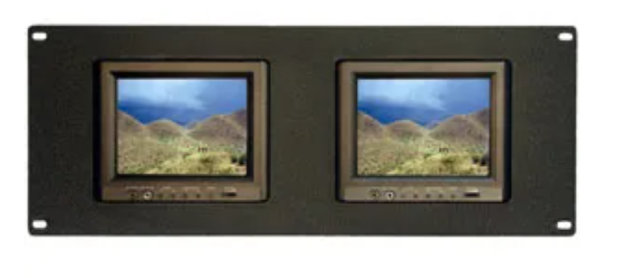 Dual 5.6-inch video monitors in a 19-inch rack mount