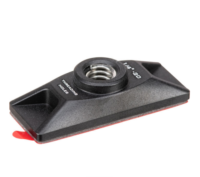 The Vaxis VAC-500-06 Cold Shoe Mount is a durable aluminum adapter that securely attaches to the back of the Vaxis ATOM 500 SDI transmitter or receiver using two 1/4"-20 screws, instantly adding a standard cold shoe foot so the unit can be mounted directly onto any camera, cage, or rig with a shoe receiver.