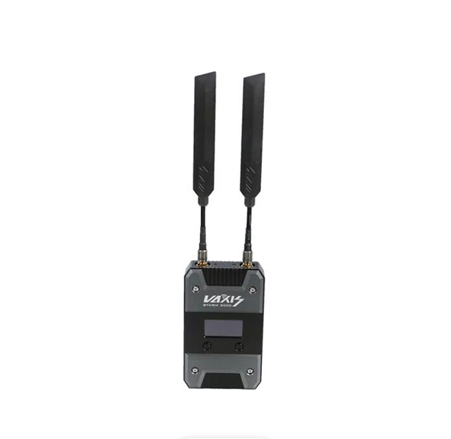 The Vaxis Storm 3000 Transmitter is a compact, high-performance wireless video transmitter built for professional use in complex RF environments. It transmits full uncompressed 1080p60 video with sub-1 ms latency up to 1000 m (3280 ft), supports multicast to multiple receivers, and includes strong digital encryption for secure feeds. With 3G-SDI and HDMI inputs, a 3G-SDI loop-through, embedded audio, timecode/metadata passthrough, and ARRI ALEXA Mini instant playback support, it integrates seamlessly into high-end cinema and broadcast workflows. The unit is powered via a fixed V-Mount plate or 2-pin LEMO (6–36 VDC), features a bright OLED screen, active cooling, and a 1/4"-20 mounting point.