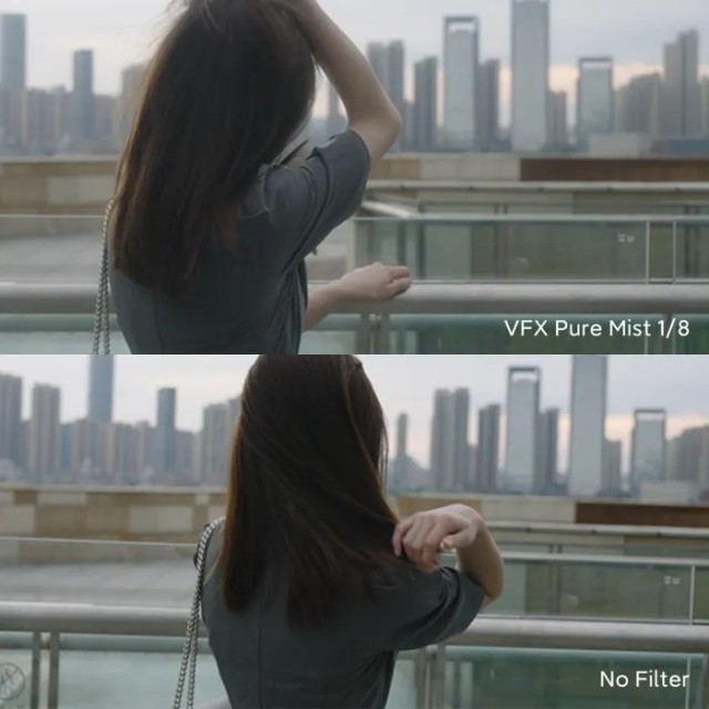The VFX 4x5.65'' Pure Mist Filter has a very beautiful halo effect. Especially in the case of actual light sources and visible light sources.the highlight dispersion is very strong.