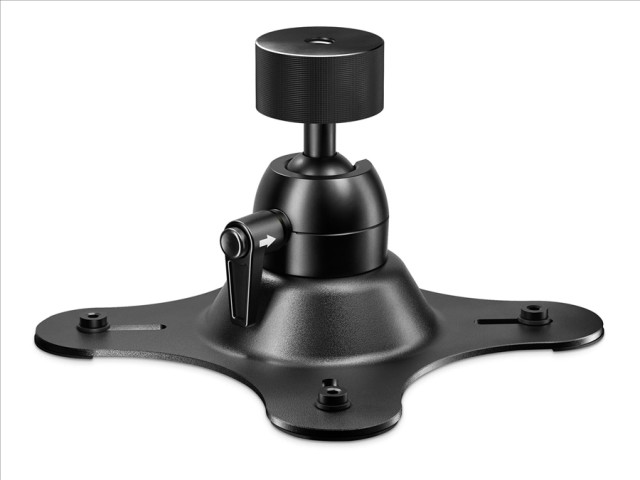 The device is attached to the mount with 4 VESA-standard screws. The mount features a lockable ball head that can be rotated 360° for easy maneuvering and locking the device in any position.