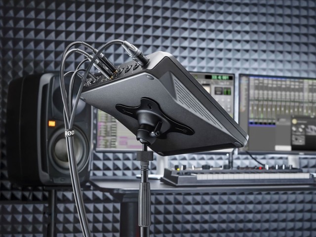 The mount attaches to any standard microphone stand. This makes it the perfect way to position the device in a variety of positions.