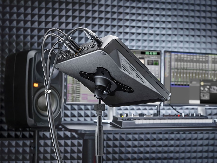 The VESA Mount from RØDE can be used with the RØDECaster Pro II and RØDECaster Duo. It can also be used with any products that are compatible with VESA 100 and VESA 75 (threaded hole spacing).