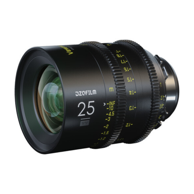 Relatively small and lightweight, the DZOFilm VESPID 25mm T2.1 Lens is part of the VESPID series of lenses from DZOFilm and is well suited for independent and high-end full-frame cinematography. The lens has an 80mm front diameter, allowing it to work with virtually any cine-style matte box. The small size makes this lens an attractive option when working with drones and gimbals, as well as when shooting handheld or run-and-gun. The interchangeable PL mount allows you to use the fully manual lens on a variety of modern and vintage cine cameras, while the full-frame coverage supports sensors that have an image circle up to 46.5mm for use on cameras with sensors up to full-frame without vignetting.