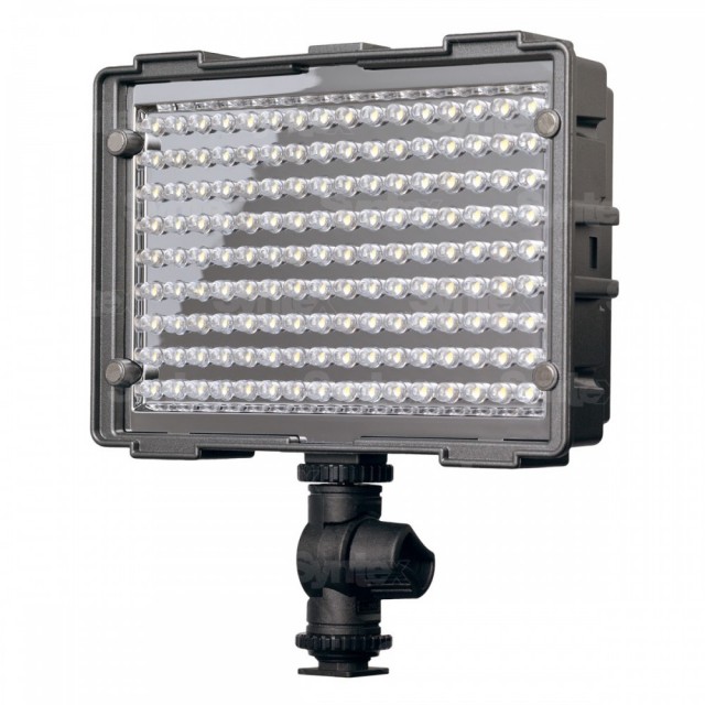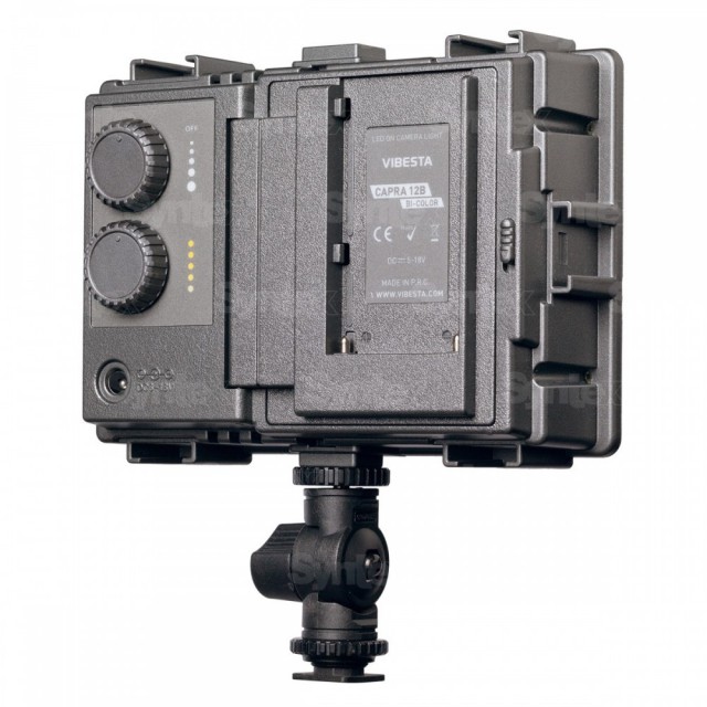 The Capra12 is a fully featured, on-camera light with 144 powerful LEDs. The unit comes in both a daylight and bi-color model. Daylight units have 144 daylight LEDs, while bi-color units have 72 daylight LEDs and 72 tungsten LEDs. This light can be dimmed from 0-100%, via a dimmer knob on the back of the light, without any noticeable shift in color quality. Bi-color units have an additional knob which allows you to smoothly blend between the daylight and tungsten LEDs