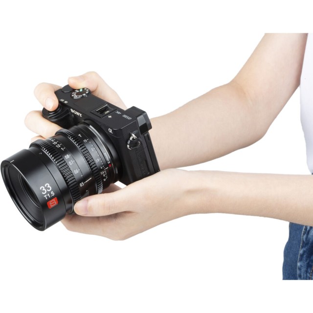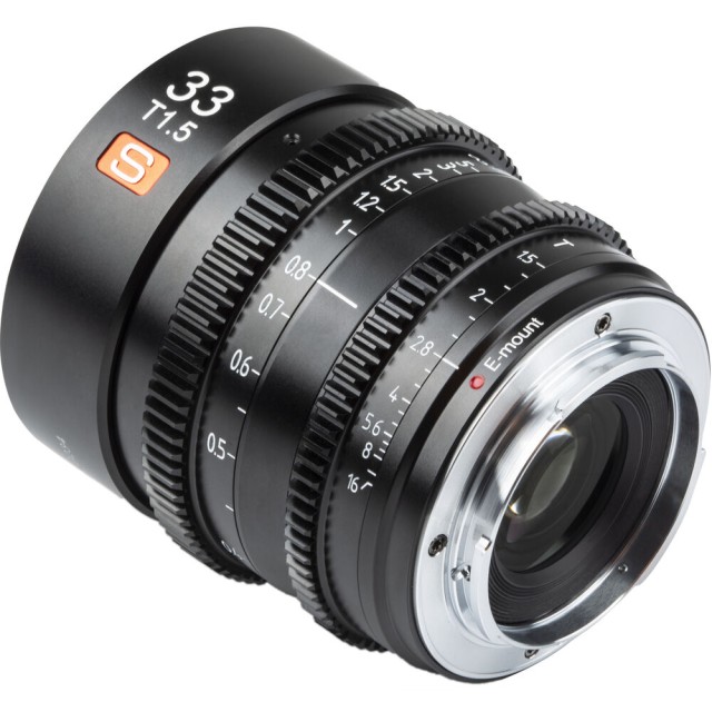 Equipped with a fast T1.5 aperture, the Sony E-mount Viltrox 33mm T1.5 Cine Lens offers cine-style coverage for S35/APS-C-sized sensor cameras even in low light levels. Multilayer coatings, a solid build, 0.8-MOD cine-style gearing, and a 14-blade aperture for smooth bokeh round out the attributes of this compact lens.