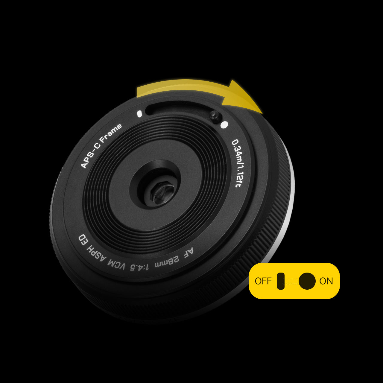 The innovative slide lever design brings a satisfying「click」to unlock creative possibilities. With a simple slide, the「body cap」transforms into a lens. Slide it back to close, minimizing dust and dirt while eliminating concerns about losing the lens cap.