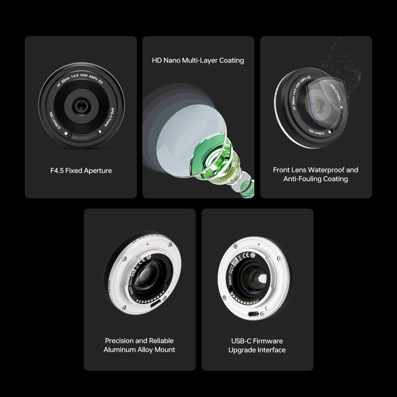 The AF 28mm F4.5 XF lens maintains Viltrox's signature efficient and precise autofocus system in a compact design. It ensures effortless accuracy, allowing Fujifilm X-mount users to focus on creativity without the hassle of complex operations.