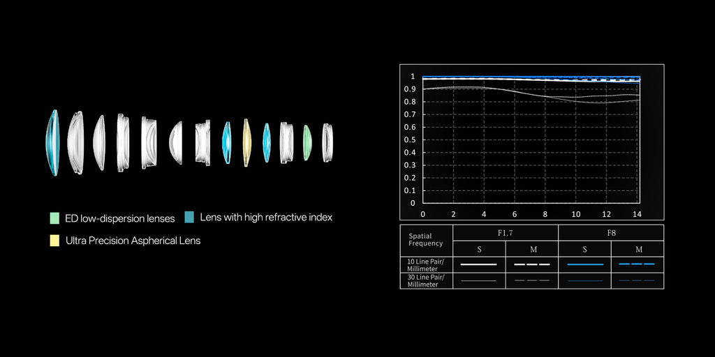 The precisely engineered optical design of 13 elements in 8 groups delivers edge-to-edge sharpness even at F1.2 maximum aperture, revealing phenomenal detail and clarity.