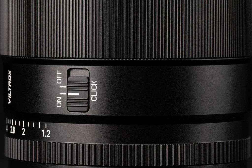 AF 56mm F1.2 Pro E-mount features a dedicated Fn button, AF/MF switch, and CLICK switch, giving photographers intuitive control over focus modes and aperture adjustments — perfect for both stills and video.