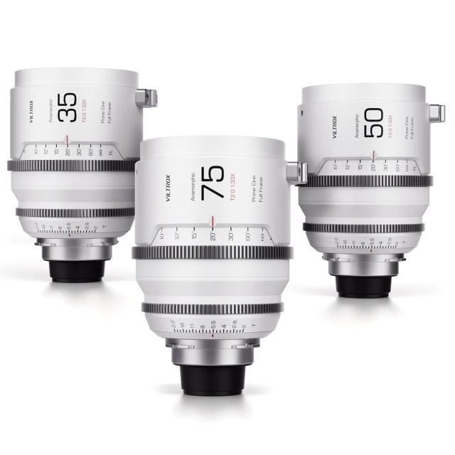 Viltrox Epic Series 35/50/75mmT2.0 1.33X full-frame anamorphic lenses are designed for PL-mount cinema cameras, marking Viltrox's official entry into the high-end film industry! The Epic Series features impressive image expression suitable for 2,35:1 widescreen work, retro pure color reproduction, 1.33x constant squeeze ratio, consistent optical performanc, zero breathing, and M0,8-geared rings. Set of three lenses, 35 mm, 50 mm, and 75 mm T2,0 with transport case.