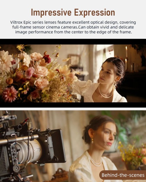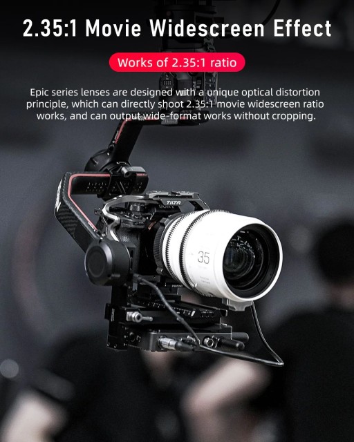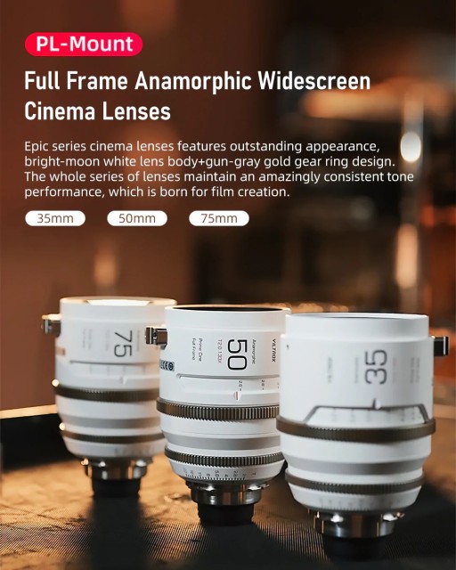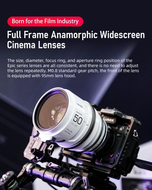 Viltrox Epic Series 35/50/75mmT2.0 1.33X full-frame anamorphic lenses are designed for PL-mount cinema cameras, marking Viltrox's official entry into the high-end film industry! The Epic Series features impressive image expression suitable for 2,35:1 widescreen work, retro pure color reproduction, 1.33x constant squeeze ratio, consistent optical performanc,…