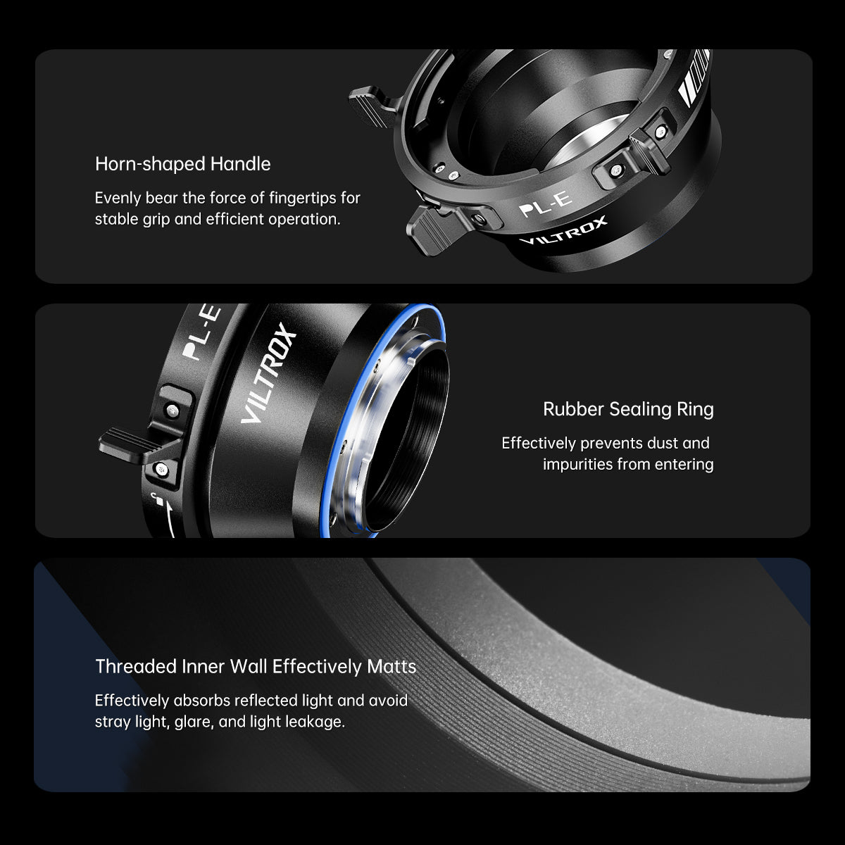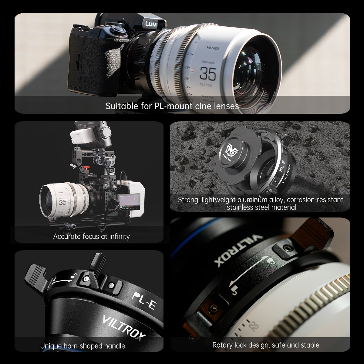 It has a broader PL mount cine lens group, enriches shooting combinations, and adds infinite possibilities.Compatible With Viltrox EPIC series PL-mount anamorphic cine lenses.