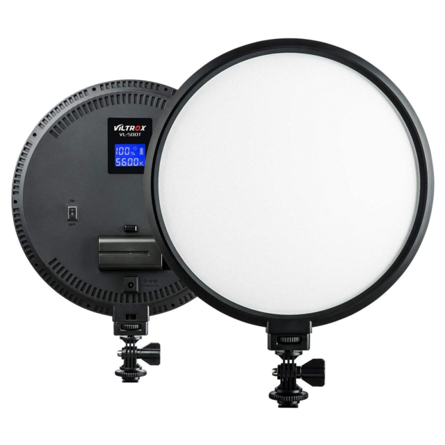 Brighten your subjects with this slim VL-300B Round Bi-Color LED Light with LCD Display from Viltrox. This soft, bi-color LED light features a high CRI of 95 for accurate color rendering, an adjustable 3300-5600K color temperature, 20 to 100% dimming, and has a maximum brightness of 1450 lumens.